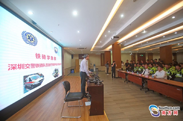 4月11日上午,隨著鐵騎隊員颯爽身姿的到來,深圳市急救中心對深圳市公安局交通警察局交警鐵騎隊員進行的首次醫(yī)療救護知識培訓活動拉開了序幕。南方日報記者 朱洪波 攝