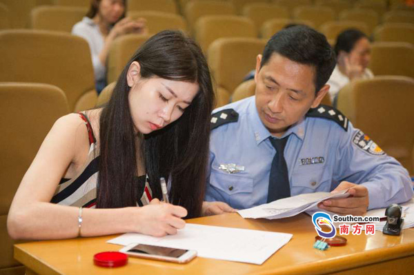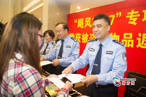 失主辦理手續(xù)領(lǐng)取被盜手機。