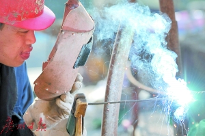 琶洲電商總部集聚區(qū)工地,建筑工人揮汗如雨,電焊工所在的崗位更熱得如烈火烹油。
