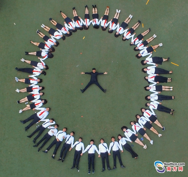 集體大合照結(jié)束后,學(xué)生們分散到校園各個角落拍照。在經(jīng)世廣場,校方提供了巨型“學(xué)生證”等展板供學(xué)生合影。在足球場,一些學(xué)生平躺在操場擺出“畢業(yè)了”的造型,換一個視角定格即將逝去的大學(xué)青春時光。