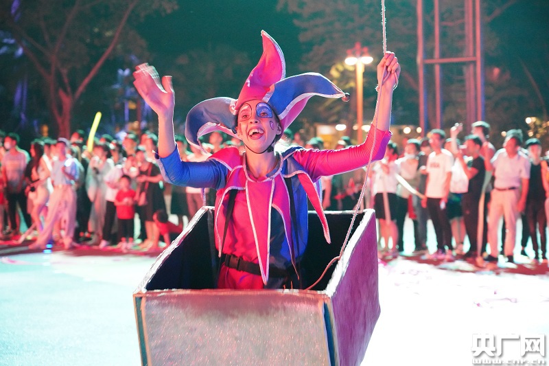 在電音節(jié)現(xiàn)場,幻彩的燈光和強(qiáng)勁的音浪,數(shù)百名來自世界各地的DJMC、模特、舞者悉數(shù)登上T臺與游客互動。記者注意到,在視覺和聽覺的雙重影響下,游客們紛紛揮舞手中的氣球棒,甚至身體也跟著搖擺起來。