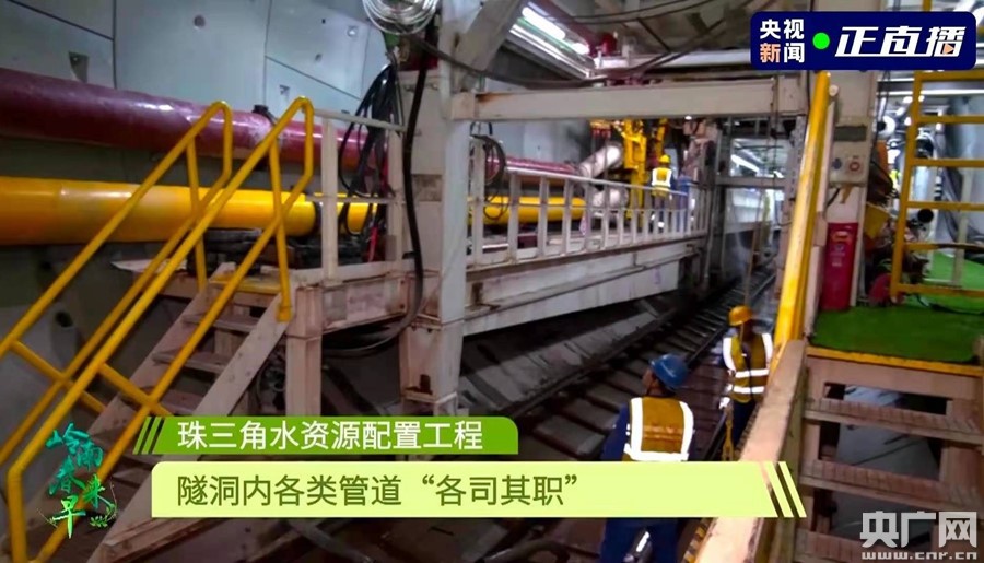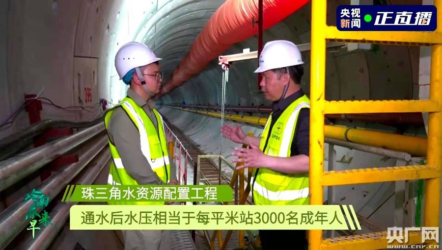 在節(jié)目中,總臺(tái)記者帶領(lǐng)觀眾去往地下60米,實(shí)地探訪了施工難度頂級(jí)的珠三角水資源配置。