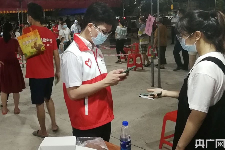 中國(guó)銀行中山東區(qū)支行志愿者有序協(xié)助開展核酸檢測(cè)工作。(央廣網(wǎng)發(fā) 通訊員供圖)