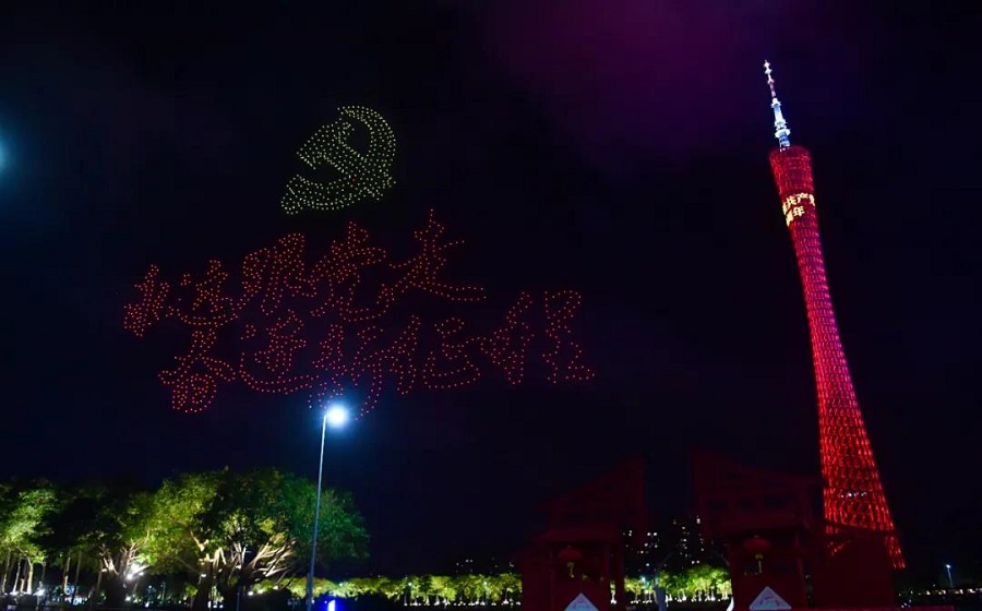 1520架無人機(jī)組成中國(guó)共產(chǎn)黨的黨旗,