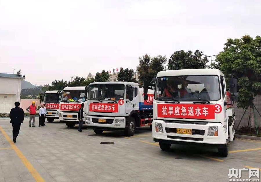 廣州水投廣州自來水公司4臺大型送水車趕赴海豐縣。(央廣網發(fā))