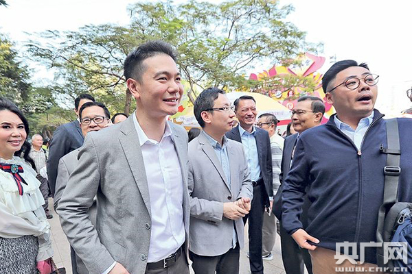 央廣網(wǎng)香港12月24日消息 香港特區(qū)民建聯(lián)昨日(24日)應廠商會邀請到工展會參觀。創(chuàng)黨主席曾鈺成、前主席譚耀宗及多位立法會議員、區(qū)議員均出席。他們參觀了售賣食品、飾物等攤位,不少市民圍觀、拍照。立法會議員周浩鼎更花近萬元在不同攤位購物。
