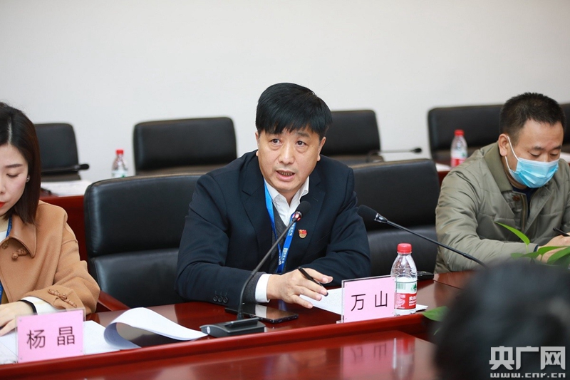 國星光電黨委副書記、工會主席萬山與國賽選手互動。(央廣網(wǎng)發(fā))