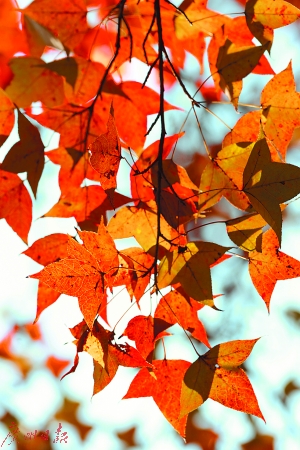 廣州白云山云溪生態(tài)公園的楓葉(資料圖片)。廣州日?qǐng)?bào)全媒體記者莫偉濃 攝