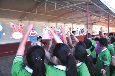 同學(xué)們正在踴躍參與看圖學(xué)法活動。
