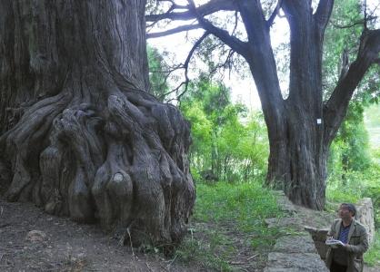 手持皮尺和鐮刀 冒雨清點古柏62株