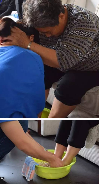 美國布法羅紐約州立大學(xué)中國校友為幸福9號(hào)老人洗腳