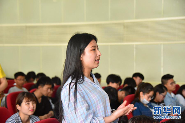 圖為當(dāng)?shù)卮髮W(xué)生就自己關(guān)心的問題進行提問