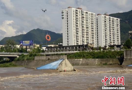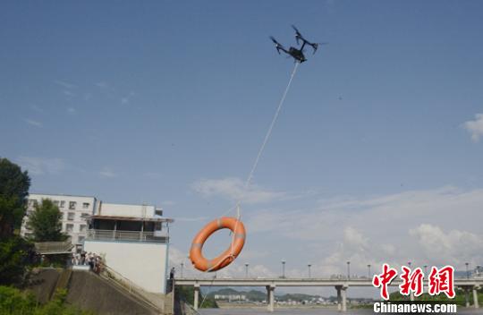 無人機向被困者投送救生圈。 鐘欣 攝