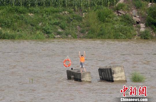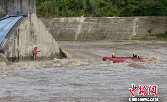 16時30分許,正在河邊營救的消防官兵再次接到民眾報警,稱位于嘉川鎮(zhèn)石龍嘴河壩處,又有1名釣魚者被洪水圍困,救援官兵迅速前往現場救援。