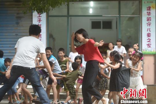 孩子們?cè)诹羰貎和液嫌!$妼W(xué)滿 攝