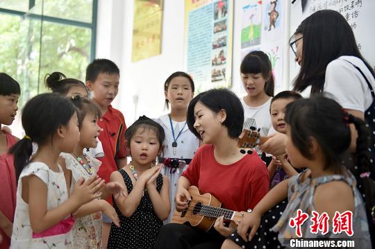 老師在教職工子女學(xué)習(xí)吉他。 鐘學(xué)滿 攝