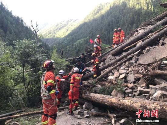 8月9日下午16時(shí)左右,德陽(yáng)消防14名黨員突擊隊(duì)員徒步行軍10余公里,歷時(shí)3小時(shí)到達(dá)洛日朗附近一帶搜索被困群眾,期間余震不斷,大小石頭不斷的從山上滾下來(lái),救援官兵把生死拋開(kāi),寸步難行的在山間搜尋。 圖片來(lái)源:四川消防供圖