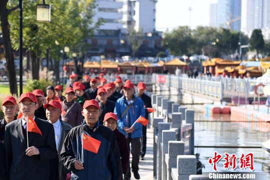 老人們一起游覽里運河風光帶。 桂寶林 攝