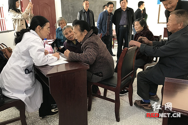 為將扶貧義診活動(dòng)落到實(shí)處,岳陽(yáng)市衛(wèi)生計(jì)生委根據(jù)西山村人口特點(diǎn),選派了岳陽(yáng)市一醫(yī)院、市二醫(yī)院、市中醫(yī)院、市婦幼保健院和康復(fù)醫(yī)院10余名副主任醫(yī)師以上醫(yī)療專(zhuān)家及護(hù)理人員開(kāi)展義診活動(dòng),F(xiàn)場(chǎng)設(shè)置了內(nèi)科、外科、婦科、中醫(yī)及精神科等義診項(xiàng)目,并攜帶B超、心電圖、血糖儀、血壓計(jì)等儀器設(shè)備為村民免費(fèi)檢查。