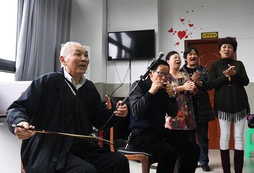 資料圖:老人們在重慶市渝北區(qū)龍塔街道紫園路社區(qū)養(yǎng)老服務(wù)站參加聯(lián)誼會。新華社記者 王全超攝