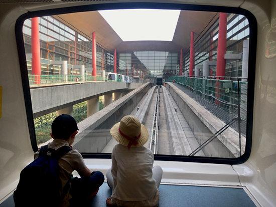 首都機場T3航站樓,前往國際登機口的小火車上,兩個孩子并排坐著看著外面。一到假期,首都機場每天進出港人數(shù)達到幾十萬,其中許多是中小學生前往世界各地。笑槑/攝