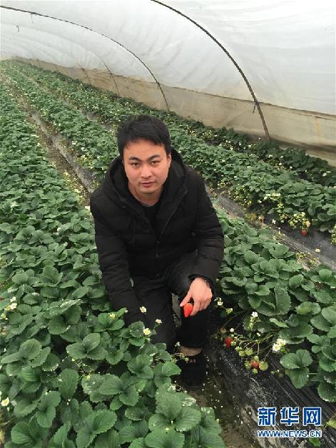 柏文在自己農(nóng)場的草莓地里摘草莓(2017年12月攝)。新華社發(fā)