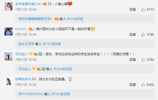 網(wǎng)友紛紛留言為丁慧點(diǎn)贊。網(wǎng)友“-城南舊夢”留言,女生人美心善,很溫暖。網(wǎng)友“ZCB張弛斌”留言,最美醫(yī)學(xué)生。(孟植良)