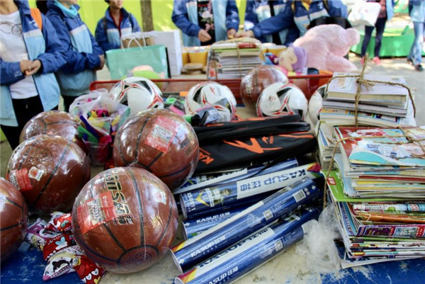 本著“我志愿、我奉獻(xiàn)、我快樂(lè)”的精神,志愿者們還自發(fā)組織捐款捐物,除了采購(gòu)了一批體育用品之外,還帶來(lái)了不少文具、收納盒、玩偶等等.....這些在我們常人看起來(lái)再平常不過(guò)的物件,孩子拿到卻愛不釋手。
