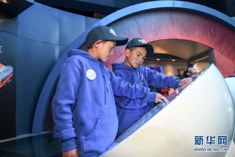 11月18日,來自青海雜多縣的小學(xué)生在安徽省地質(zhì)博物館參觀。