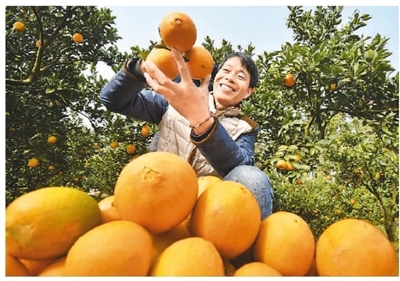 江西省金溪縣通過“公司(合作社)+基地(種植大戶)+農(nóng)戶(貧困戶)”的模式,引導(dǎo)當(dāng)?shù)剞r(nóng)戶因地制宜規(guī);l(fā)展香橙、葡萄、蠶桑等特色產(chǎn)業(yè),幫助他們在家門口實現(xiàn)脫貧增收。圖為11月26日金溪縣合市鎮(zhèn)鳳凰山村果農(nóng)在采摘香橙,準(zhǔn)備供應(yīng)市場。