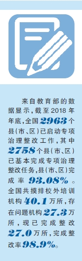 教育部今年1月匯總的各地數(shù)據(jù)顯示,北京、天津、山西、遼寧、吉林、黑龍江、上海等20多個省區(qū)市存在問題的機構(gòu)已基本完成整改。