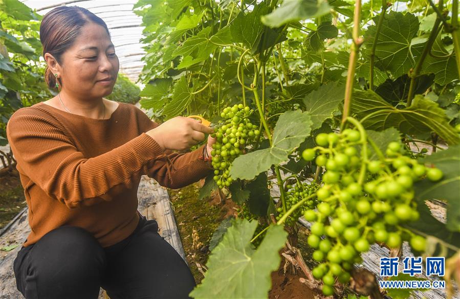4月24日,河北省棗強(qiáng)縣唐林鎮(zhèn)李進(jìn)伯村的農(nóng)民給葡萄疏果。