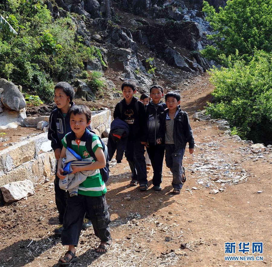 云南西疇縣雞街鄉(xiāng)肖家塘村的孩子行走在上學(xué)路上(2012年4月23日攝)。 新華社記者 楊宗友 攝