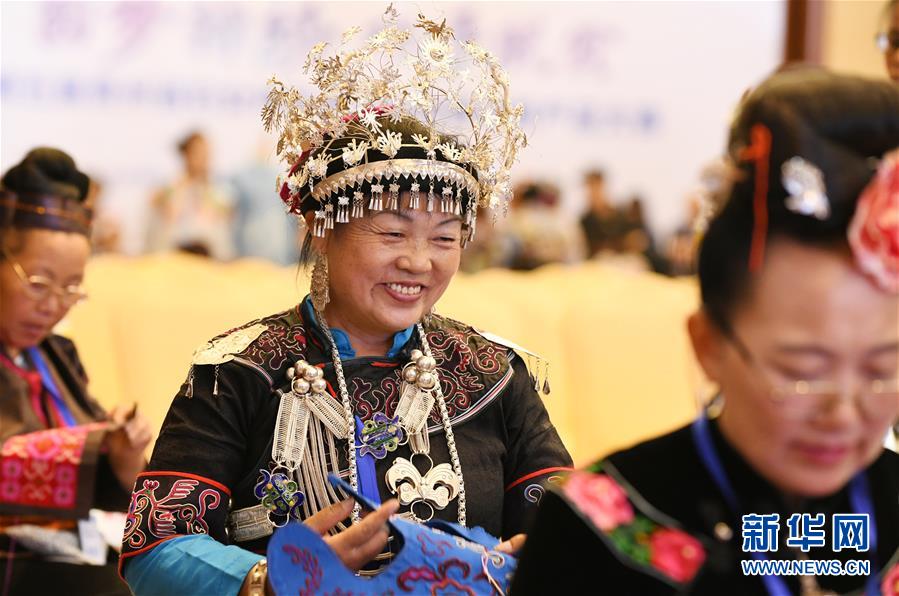當(dāng)日,第五屆貴州省婦女特色手工技能暨創(chuàng)新產(chǎn)品大賽在貴陽(yáng)市舉行。來(lái)自貴州省各地的繡娘和染娘分別就民族刺繡、民族蠟染、創(chuàng)新產(chǎn)品設(shè)計(jì)等項(xiàng)目進(jìn)行比拼,她們?cè)诂F(xiàn)場(chǎng)飛針走線、巧手繪圖,展示貴州婦女特色手工之美。
