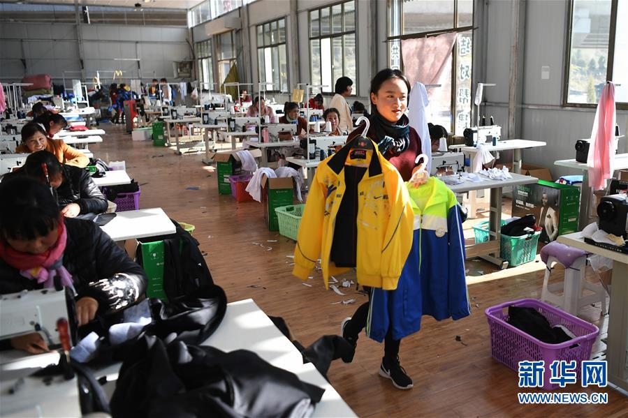 11月2日,渭源縣上灣鎮(zhèn)侯家寺村村民張住花在上灣鎮(zhèn)“巾幗扶貧車間”內(nèi)整理服裝樣品。 今年以來,甘肅省定西市渭源縣積極創(chuàng)新產(chǎn)業(yè)扶貧模式,與福建省福州市開展東西部協(xié)作,以“扶貧車間”為載體,為貧困村培育特色產(chǎn)業(yè),“送崗上門、就地上班”的扶貧模式讓貧困群眾實現(xiàn)“掙錢顧家兩不誤”。截至目前,當?shù)匾呀ǔ缮婕胺b加工、花卉培育、蔬菜種植和中藥材飲片生產(chǎn)等領域的“扶貧車間”13個,帶動1800多戶貧困戶就業(yè)增收。新華社記者陳斌 攝 -