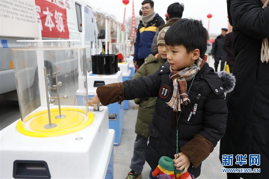 1月15日,在靜寧縣成紀(jì)廣場(chǎng),小朋友在體驗(yàn)科普裝置。 當(dāng)日,甘肅省2019年文化科技衛(wèi)生“三下鄉(xiāng)”集中示范活動(dòng)在甘肅省靜寧縣舉行,文化、醫(yī)療和科技工作者為當(dāng)?shù)厝罕娝腿ベN心服務(wù)和新春祝福。 新華社發(fā)(張智敏 攝)