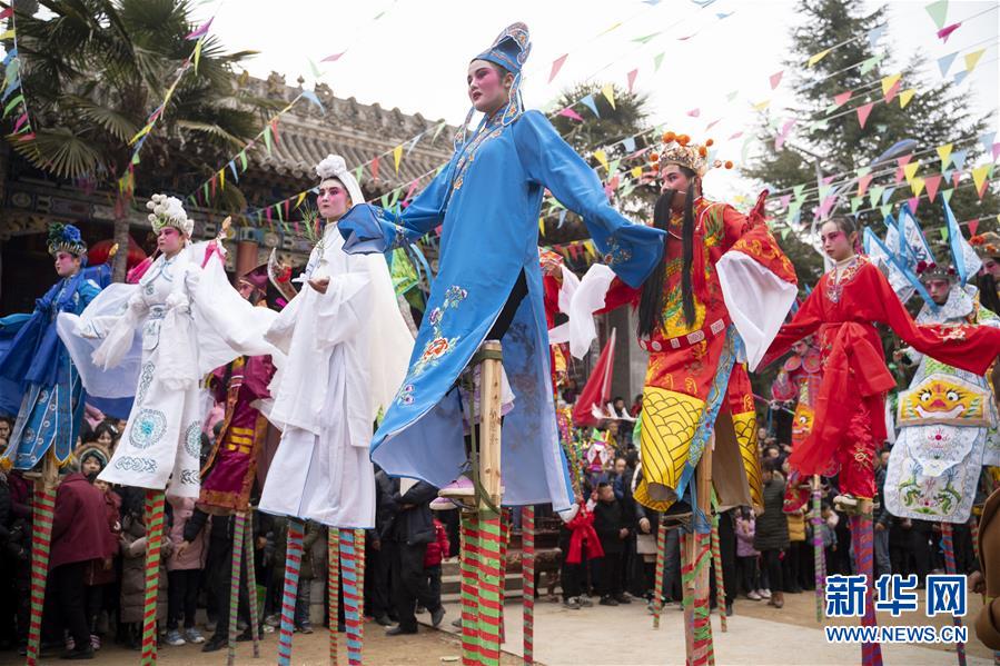 2月19日,在甘肅省隴南市武都區(qū)馬街鎮(zhèn)寺背村,社火隊演員參加巡游表演。新華社記者才揚 攝 -