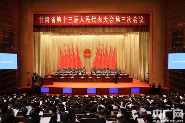 甘肅省第十三屆人民代表大會第三次會議今天開幕(央廣網(wǎng)記者 王妍 攝)