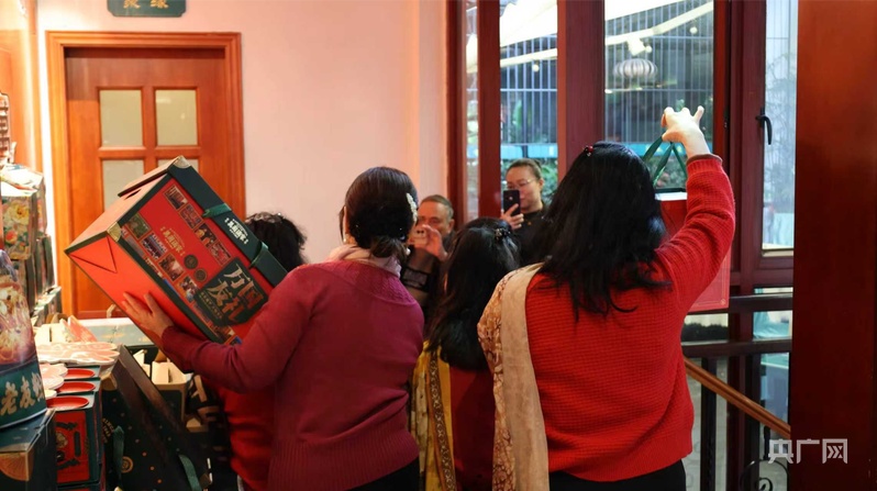 萬(wàn)國(guó)酒家提前布置的年貨禮盒區(qū)吸引食客打卡(實(shí)習(xí)記者 畢傲雪 攝)