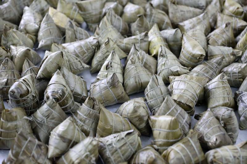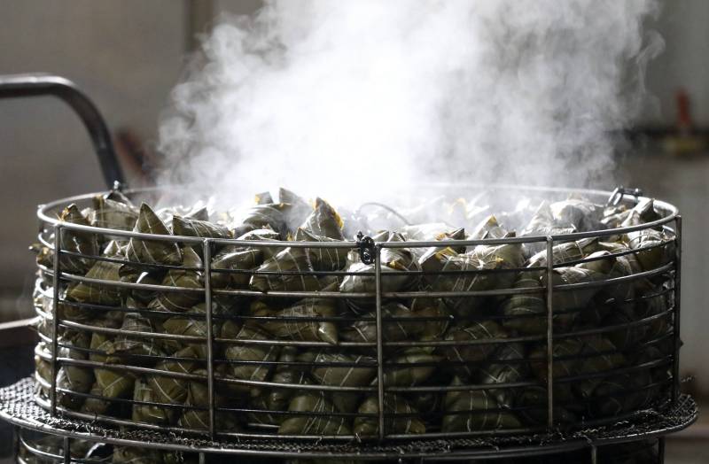 煮熟后待包裝的粽子。龔普康攝