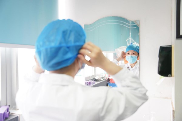 在武漢“抗疫”期間,江淀淀的主要工作是進(jìn)艙護(hù)理患者。每位工作人員在進(jìn)入方艙之前,都需要在潛在污染區(qū)消毒殺菌并檢查穿戴好個(gè)人的防護(hù)用品。潛在污染區(qū)是一個(gè)幾平方米的密閉空間,在每位工作人員進(jìn)艙之前,江淀淀都會(huì)在這里檢查他們的防護(hù)是否規(guī)范,精神面貌是否符合要求;工作人員出艙的時(shí)候,江淀淀也會(huì)指導(dǎo)和協(xié)助每個(gè)工作人員脫下防護(hù)用具,并盡量地減少和避免暴露的機(jī)會(huì)。