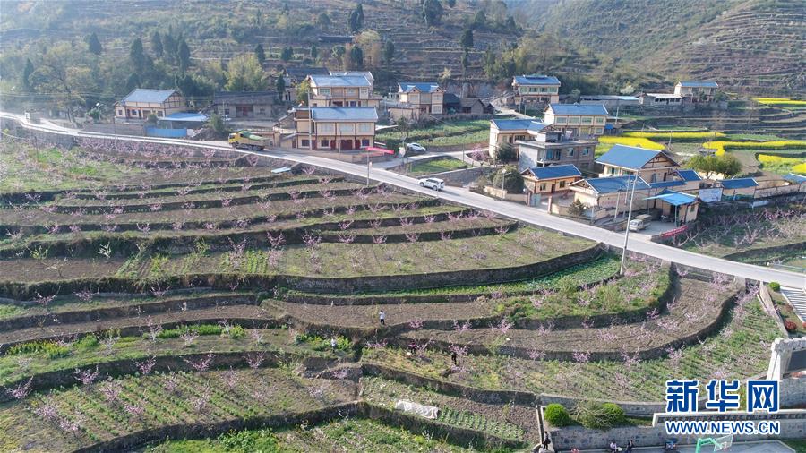 3月15日,遵義茅栗鎮(zhèn)的田野里桃花盛開(無人機拍攝)。 2014年初以來,貴州省遵義茅栗鎮(zhèn)在“鄉(xiāng)村振興”建設(shè)中以改變種植結(jié)構(gòu)為突破口,積極帶動農(nóng)民增收致富。該鎮(zhèn)投入2000多萬元,在過境公路兩側(cè)的責(zé)任地里套種經(jīng)果林,建起了7000余畝共10公里長的桃、李優(yōu)質(zhì)經(jīng)果林長廊,帶動當(dāng)?shù)剜l(xiāng)村百姓增收致富。 新華社記者 楊楹攝 -