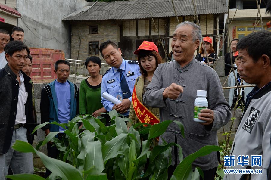 5月23日,在貴州省龍里縣龍山鎮(zhèn)朝陽村,龍里縣公安局脫貧攻堅突擊隊邀請農業(yè)專家彭功明教授(前右二)為當地村民傳授技術。 2017年8月,貴州省龍里縣公安局成立了一支由34名民警組成的脫貧攻堅突擊隊,幫扶龍山鎮(zhèn)朝陽、高峰、中壩3個村。截至今年5月中旬,突擊隊籌措資金150多萬元,幫助村民完成危舊房改造26戶,“改廁、改廚、改圈”159戶,修建串寨路、連戶路、獨戶路4.8公里,深受群眾好評。 新華社記者 楊楹 攝 -