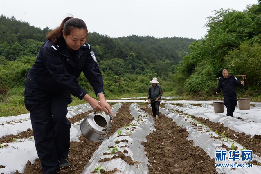 5月23日,在貴州省龍里縣龍山鎮(zhèn)朝陽村,龍里縣公安局脫貧攻堅突擊隊的兩名隊員幫助村民對農作物進行澆水施肥。 2017年8月,貴州省龍里縣公安局成立了一支由34名民警組成的脫貧攻堅突擊隊,幫扶龍山鎮(zhèn)朝陽、高峰、中壩3個村。截至今年5月中旬,突擊隊籌措資金150多萬元,幫助村民完成危舊房改造26戶,“改廁、改廚、改圈”159戶,修建串寨路、連戶路、獨戶路4.8公里,深受群眾好評。