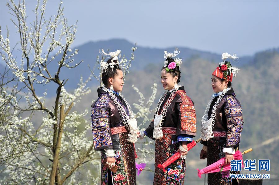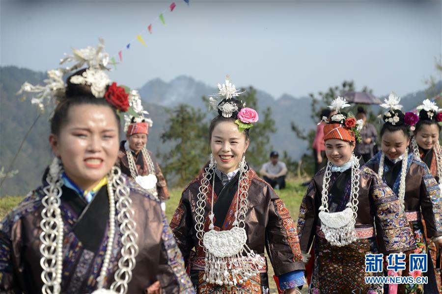3月21日,在貴州省臺江縣施洞鎮(zhèn)小河村貓坡寨,當?shù)卮迕裆碇⒀b參加節(jié)慶活動。當日是二十四節(jié)氣中的春分,貴州省黔東南苗族侗族自治州臺江縣施洞鎮(zhèn)小河村貓坡寨舉辦二月十五姊妹節(jié)。少數(shù)民族同胞身著節(jié)日盛裝歡聚一堂,共同慶祝節(jié)日。新華社發(fā)(林世禎 攝)