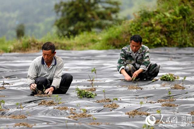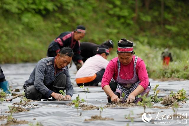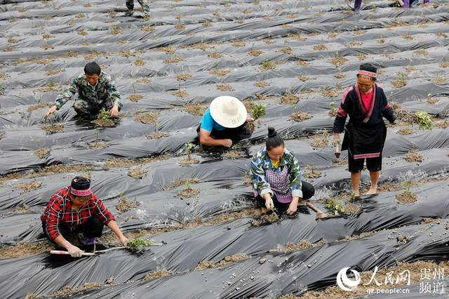 4月23日,在貴州省劍河縣柳川鎮(zhèn)高標(biāo)村菊花種植基地,村民正在栽種菊花。