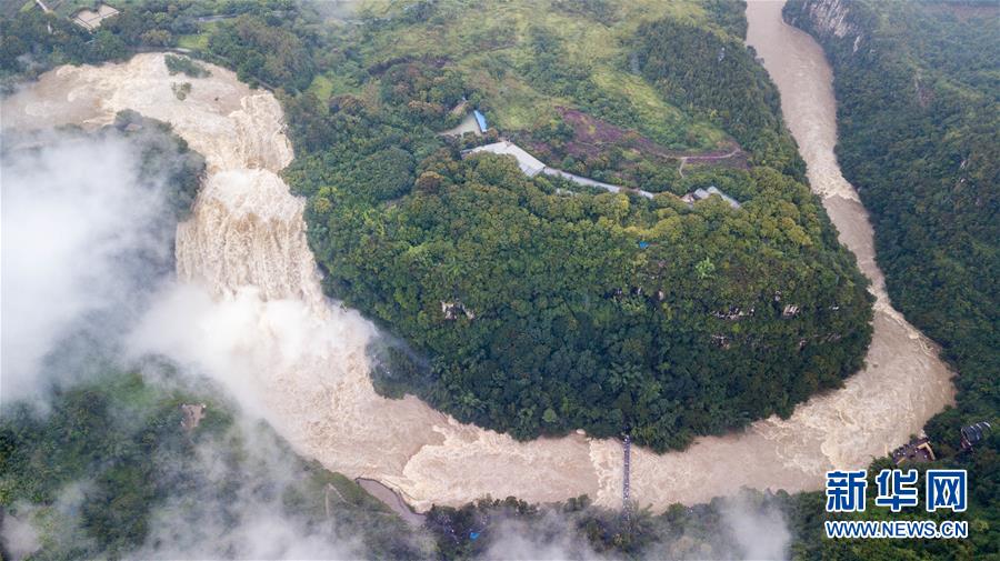 連日來,受強降雨影響,貴州黃果樹瀑布流量增大,水流飛瀉而下,氣勢尤為壯觀。