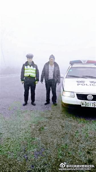 12月5日,河北高速交警總隊(duì)保定支隊(duì)官方微博發(fā)布微博稱(chēng),4日恰逢重大霧霾天氣,全省高速基本全部關(guān)閉,保定成了“重災(zāi)區(qū)”。一輛私家車(chē)霧霾天在高速上行駛,突然車(chē)上一位老人有情況發(fā)生需要下車(chē)解決,于是司機(jī)就把車(chē)停在了路邊?墒撬緳C(jī)等了半天就是不見(jiàn)老人回來(lái),情急之下司機(jī)打電話給高速交警涿州大隊(duì)進(jìn)行求助。民警聽(tīng)說(shuō)有人在高速走失后就馬上進(jìn)入高速公路進(jìn)行尋找。經(jīng)過(guò)民警的搜尋,最后在北京琉璃河的便道上發(fā)現(xiàn)了老人,最終民警將老人安全地帶給了他的家人。