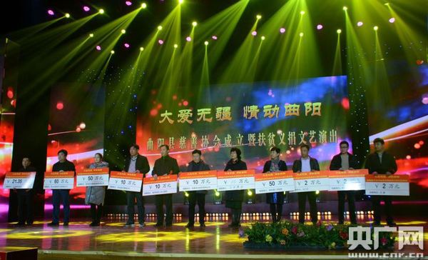 央廣網保定2月1日消息(記者孟曉光 通訊員 郭英焜) “這是心的呼喚,這是愛的奉獻,這是人間的春風,這是生命的源泉……”日前,河北省曲陽縣慈善協(xié)會成立暨扶貧義捐文藝演出在曲陽永寧會堂舉行,在“大愛無疆 情動曲陽”扶貧義捐現(xiàn)場,社會各界當場捐款2597.6966萬元。