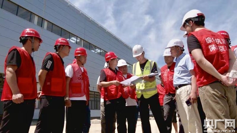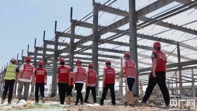 身穿紅馬甲的河北京車造車基地項(xiàng)目建設(shè)施工保障隊(duì)伍。
